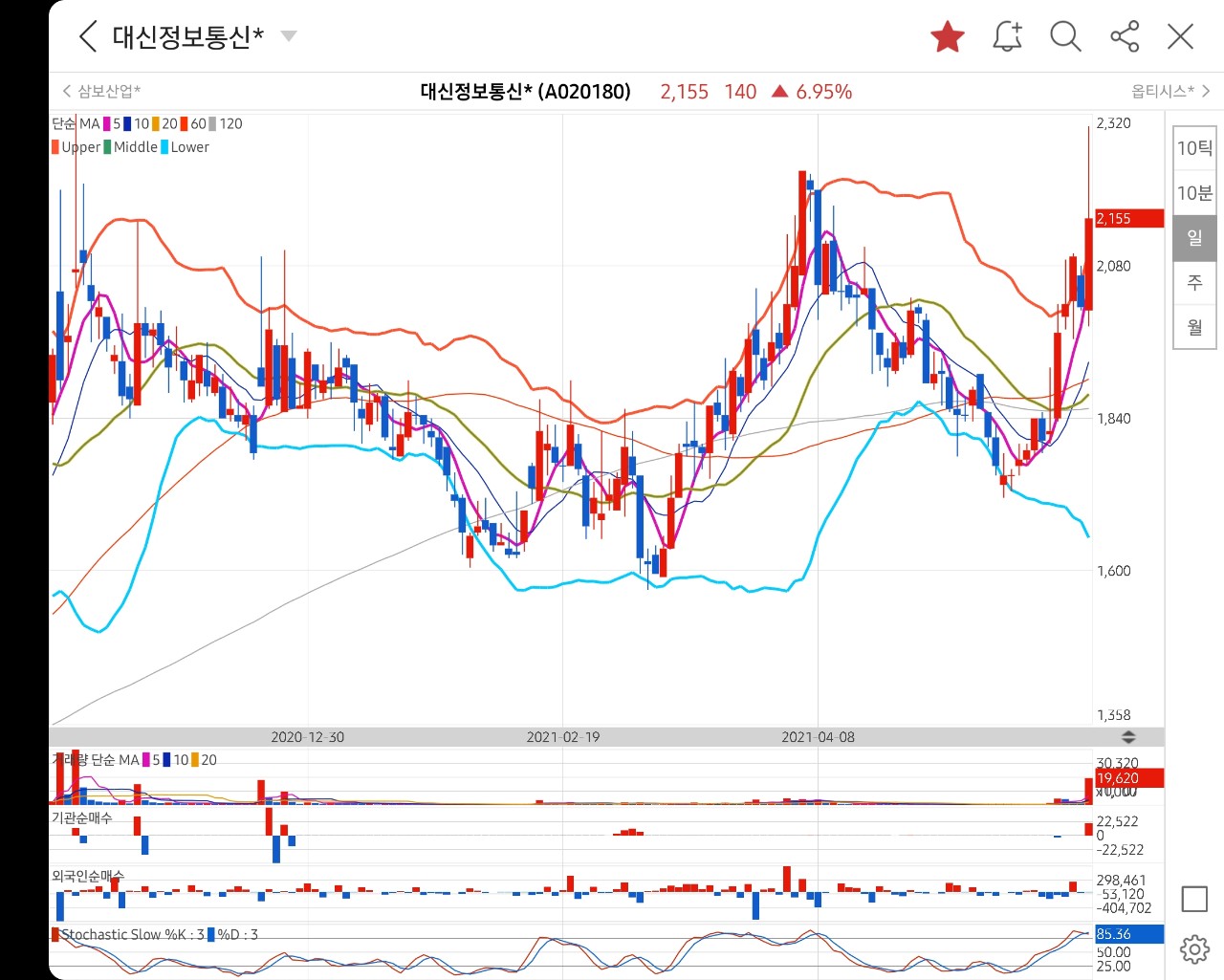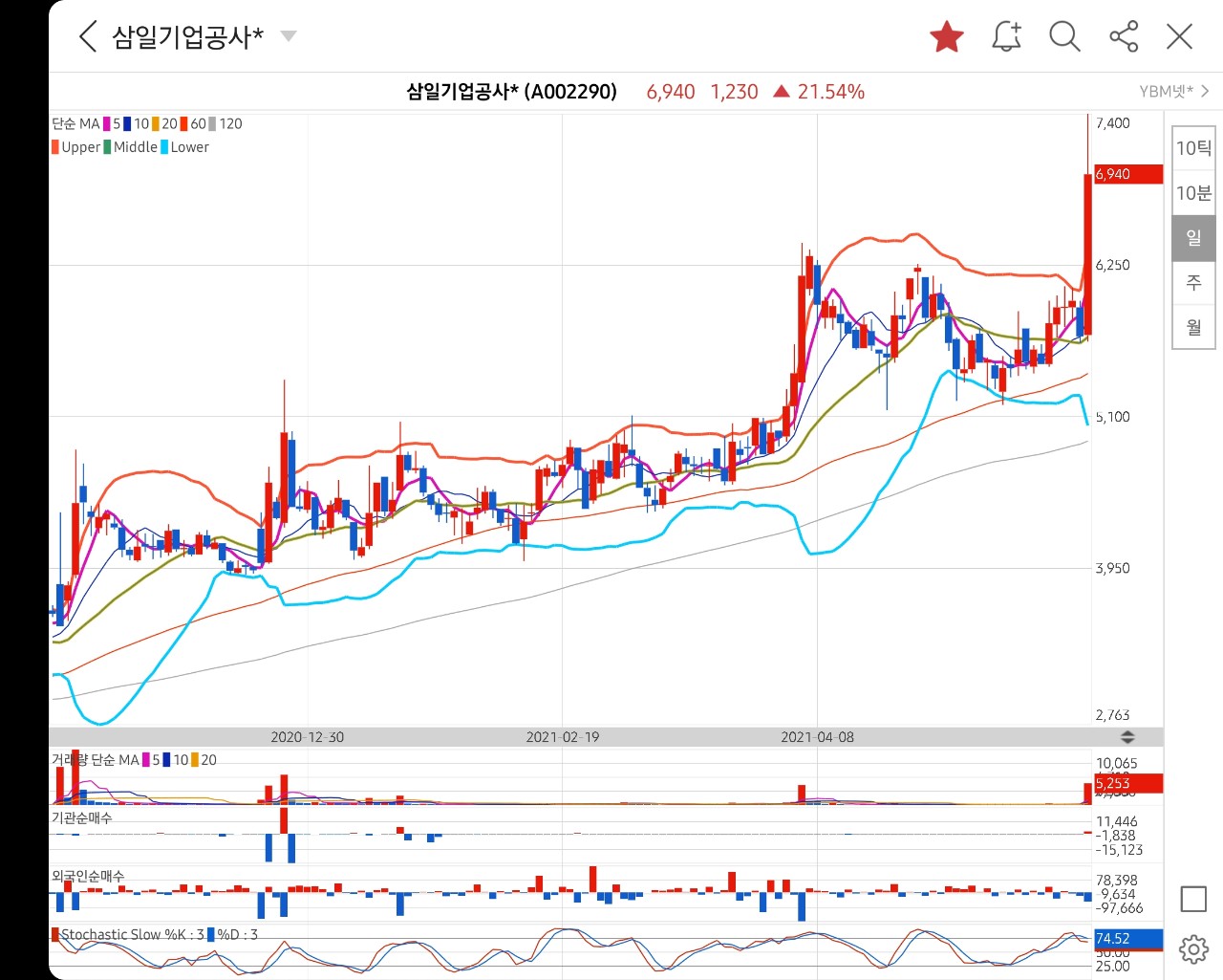 삼일기업공사 5백만주 넘게 거래량이 터지면서 21.54% 상승한 6,940원에 마감하였습니다. 대신정보통신 6.95% 상승, 서한 4.70% 상승 마감하였습니다.