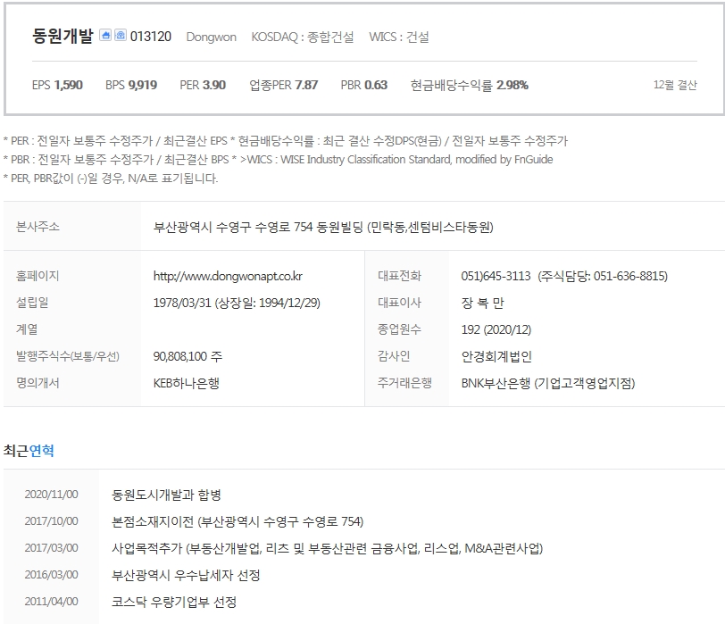 2021년 04월 22일 현재, 시가총액 5,630억, 발행주식수 90,808,100주, 대주주지분율 60.9%.